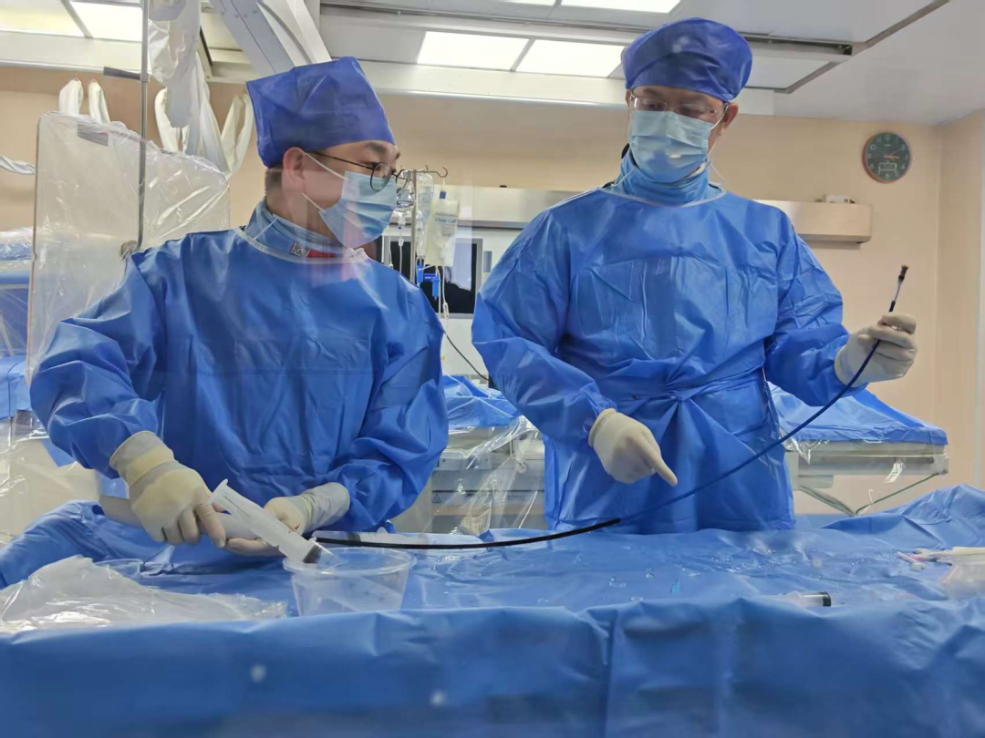 患者住院第三天,金心团队成功植入无引线经股静脉起搏器。手术过程中各部门密切配合,医疗队按时调配,手术顺利完成。